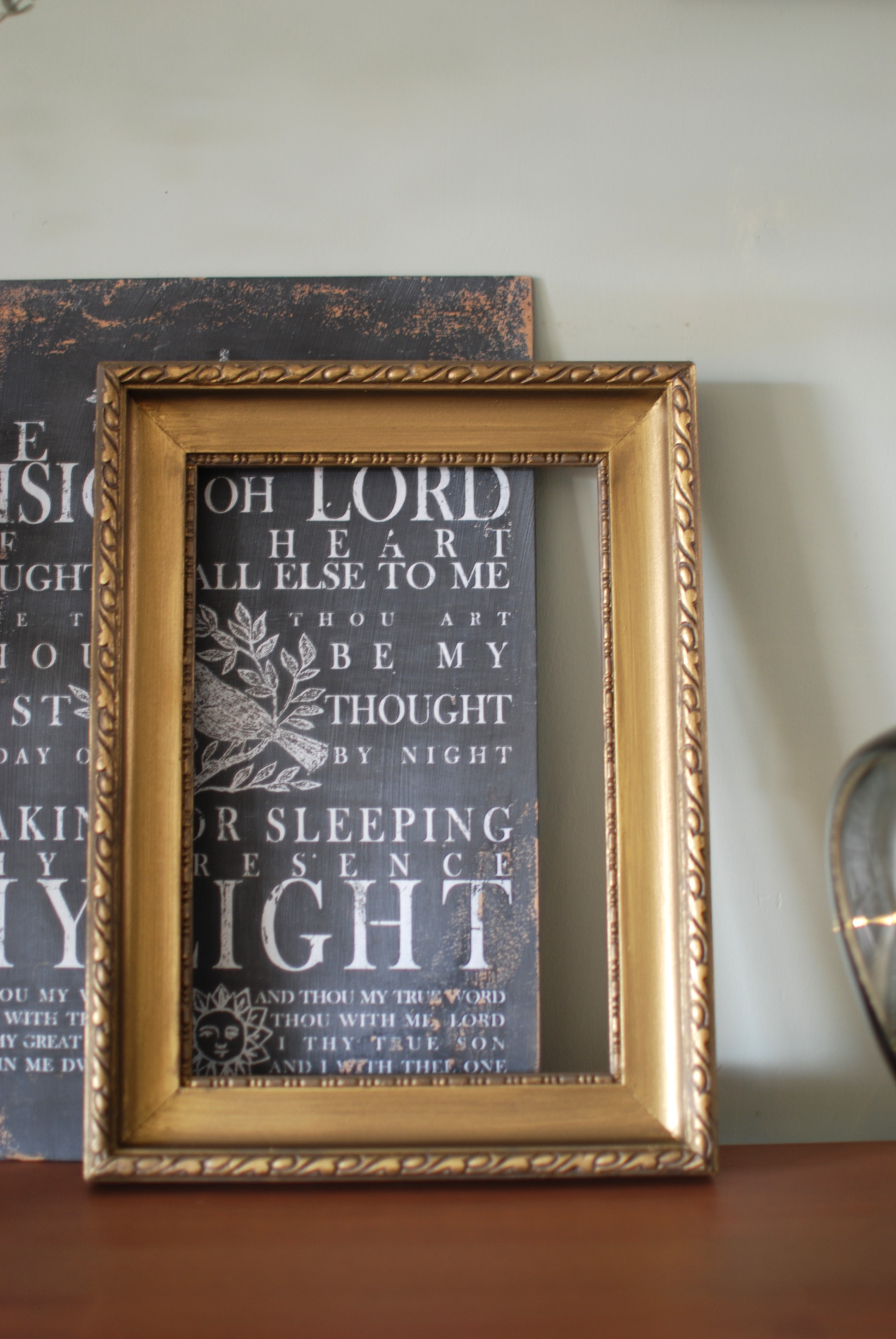 Rám som trpezlivo vyčistila, jemný ornament na viacerých miestach zrekonštruovala a nakoniec som mu dala nový náter - kombinovala som metalické odtiene farieb Fusion mineral paint - Gold a Bronze a nakoniec ešte pridala štipku minerálnej farby Fusion m odtieni Oakham.